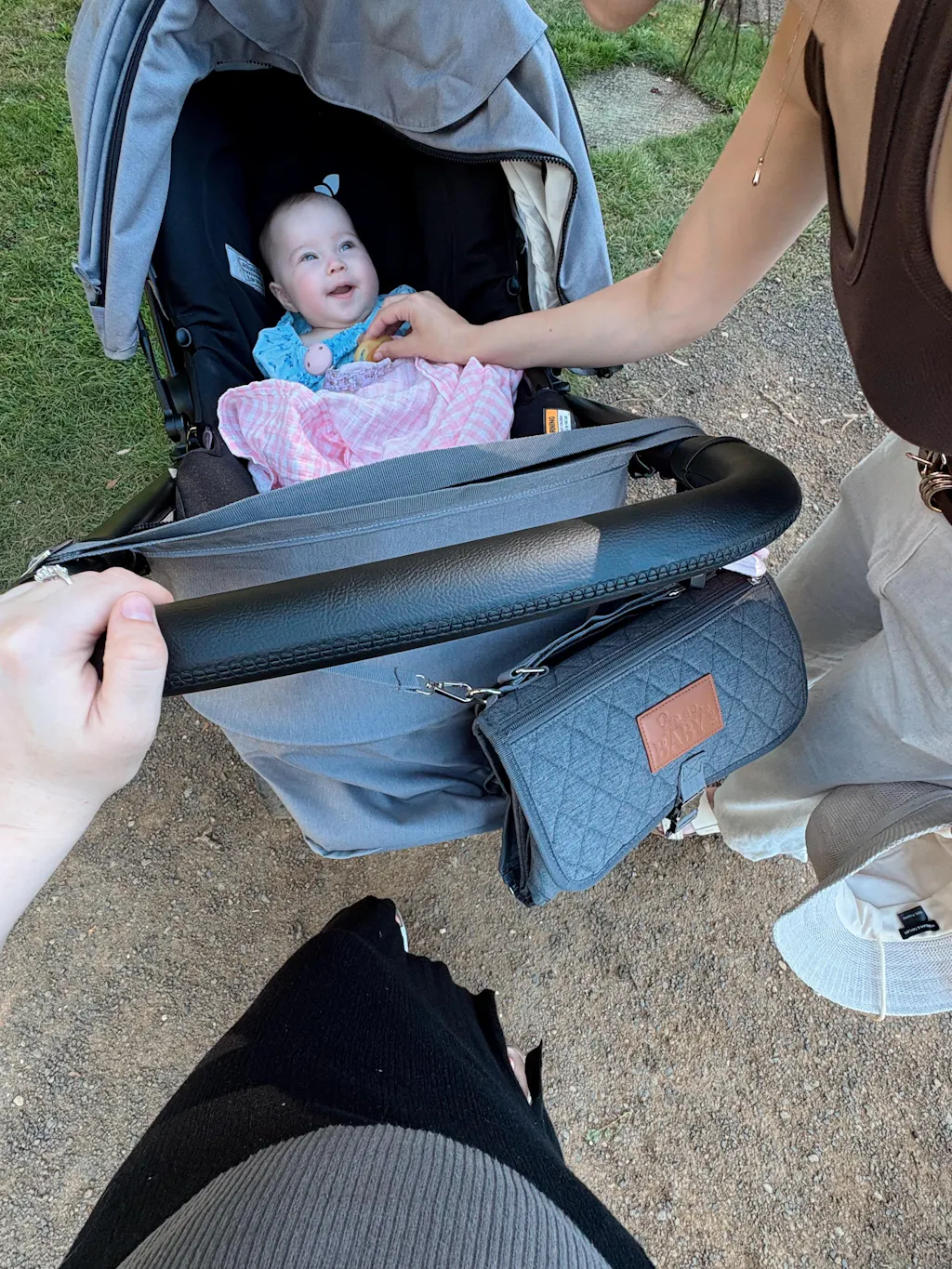 This nappy bag is AMAZING! Has so much room to hold all the necessities while also being small and easy to take places.